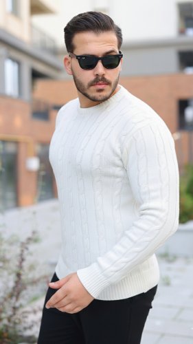 • Erkek Örgü Desen Bisiklet Yaka Kazak