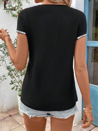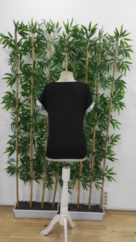 Kadın kısa kollu önden fermuarlı kol ucu ışıltılı viskon bluz
