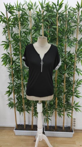 • Kadın kısa kollu önden fermuarlı kol ucu ışıltılı viskon bluz